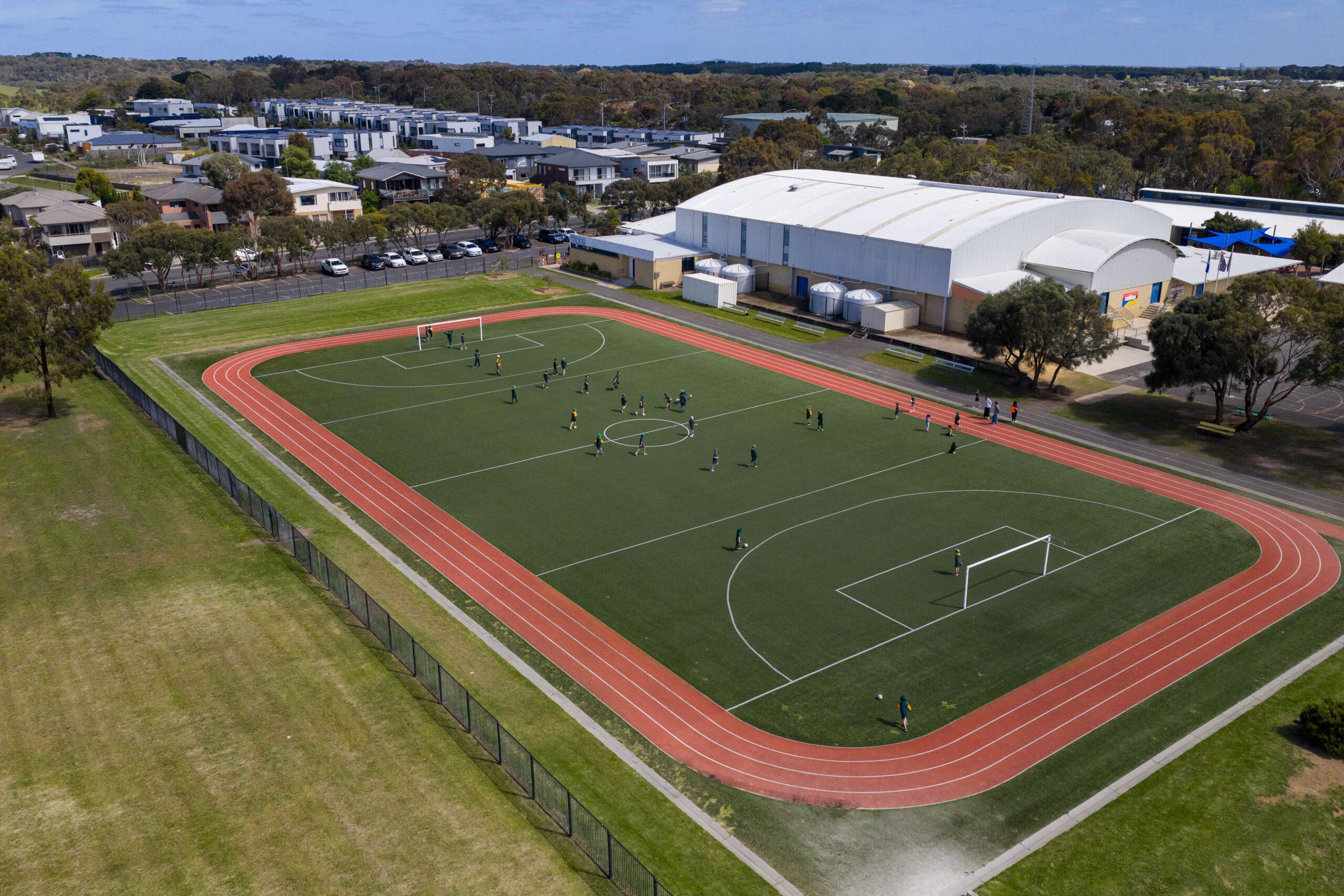 Our synthetic athletics track supports running programs, fitness training and school athletics carnivals, while incorporating a soccer field for team sports and skill development.